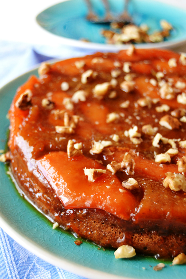 Adoro o caramelo decandente, a mistura com a fruta assada e o bolo denso e húmido, cujo aspecto interior e exterior me deixa imediatamente de água na boca!