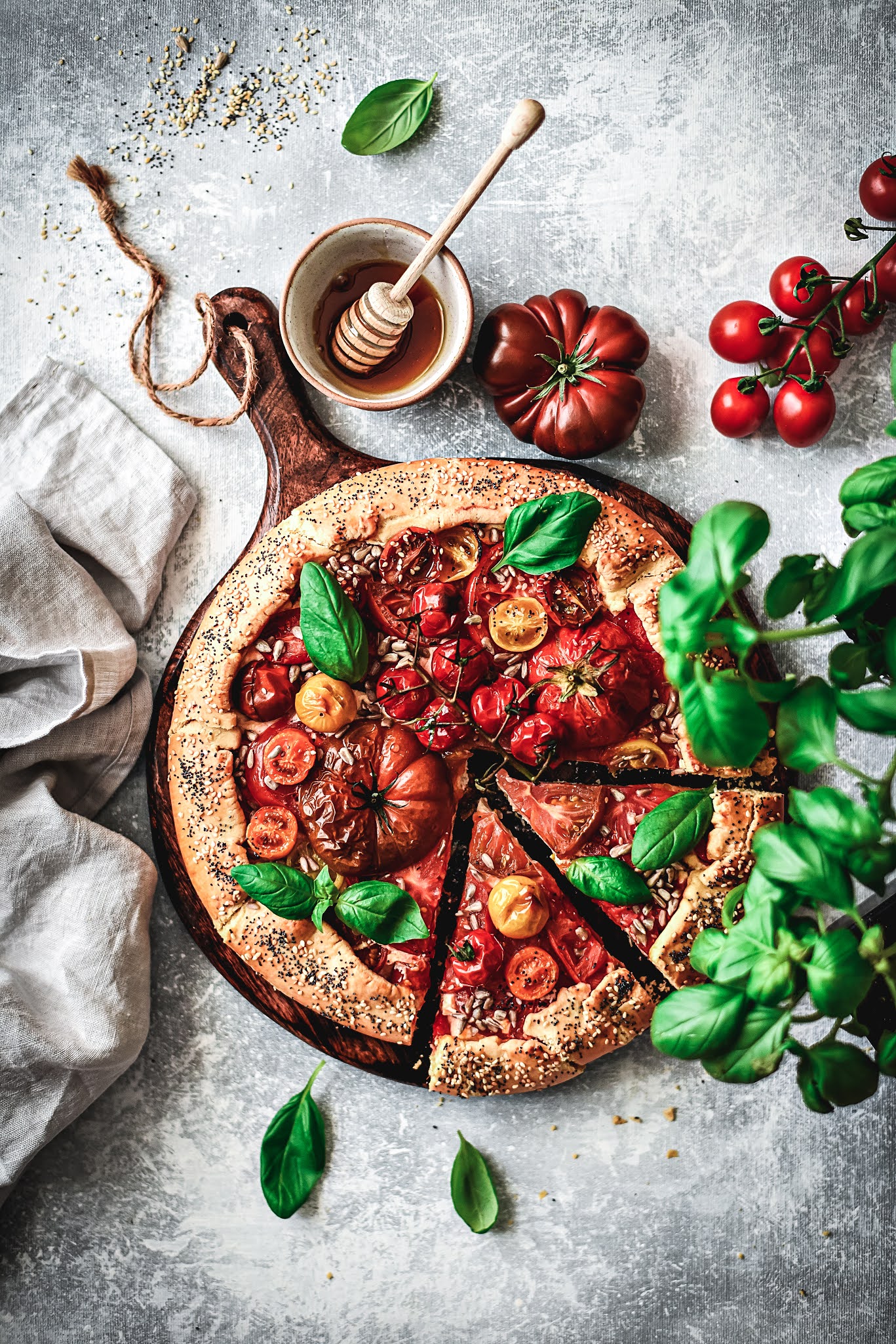 Fui desafiado pela Parmalat a criar uma receita com a Nata com Tomate Parmalat. Esta é uma nata perfumada com o sabor aromático do manjericão e que vem enriquecer os nossos pratos de massa, lasanhas, risottos, quiches, etc. Pensei logo numa receita perfeita para o Verão, que fosse fácil de fazer, que pudesse agradar a toda a gente e claro, com um dos ingredientes estrela desta estação, o tomate. O resultado foi esta Galette de Tomate bastante aromática e ideal para aqueles dias em que não apetece estar muito tempo na cozinha. Acompanhem com uma salada de folhas verdes e saboreiem o melhor do Verão. No site da Parmalat encontram esta e muitas outras receitas deliciosas, todas elas preparadas com as diferentes variedades de natas Parmalat.