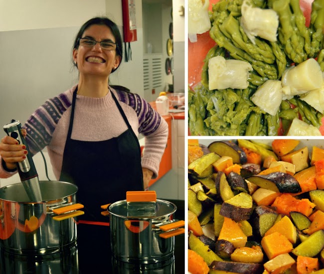 A turma foi dividida em grupos de duas pessoas e eu tive o prazer de poder cozinhar com a simpática Graziela Costa, também ela autora de um blog, o Vida de Desempregada (vejam a reportagem dela do curso, aqui). A Graziela também é fotógrafa (Graziela Costa Photography) e tem um talento ímpar. Aliás, enquanto cozinhávamos, ainda me ensinou algumas dicas sobre fotografia.